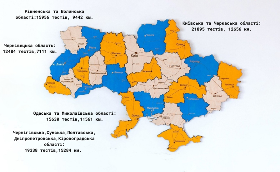 За останні три місяці фахівці УДЦР здійснили тестування в 554 населених пунктах із чисельністю населення від 1000 до 2000 осіб. Всього було проведено 85 303 тестів, при загальній протяжності проїзду мобільних вимірювальних комплексів 56 054 кілометри.